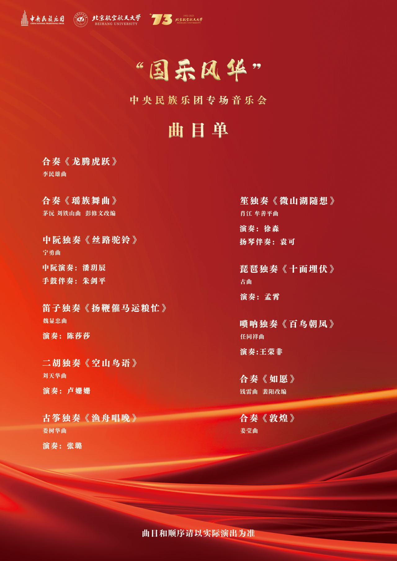 【庆祝0033990威尼斯建校73周年系列活动】国乐风华中央民族乐团专场音乐会